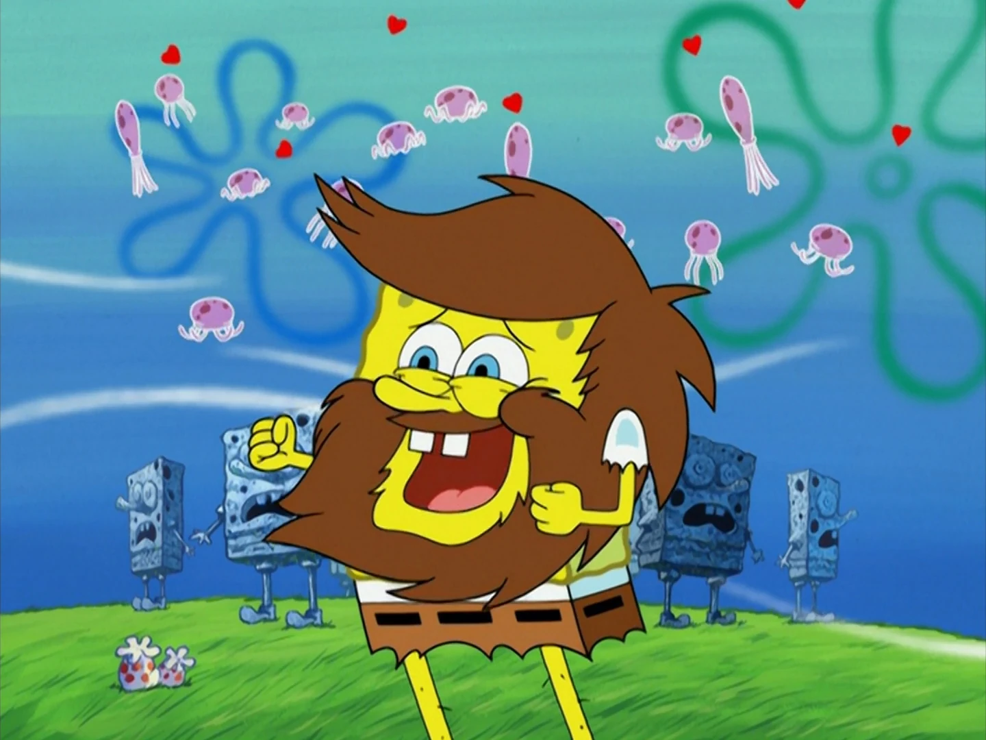 - Jellyfishing: SpongeBob and Patrick jellyfish in several episodes, in "Jellyfish Hunter"; he caught every single jellyfish in the fields.