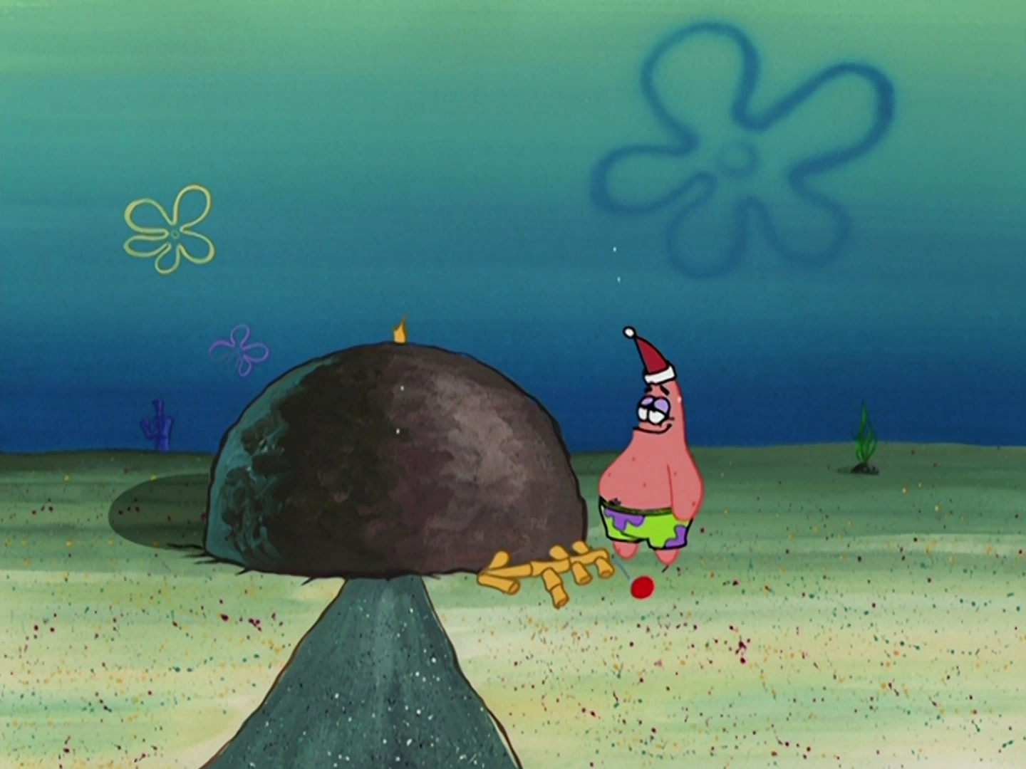- In "Christmas Who?," he cuts down Squidward's tree (which is actually illegal), and puts up decorations on Squidward's house even though Squidward said not to.