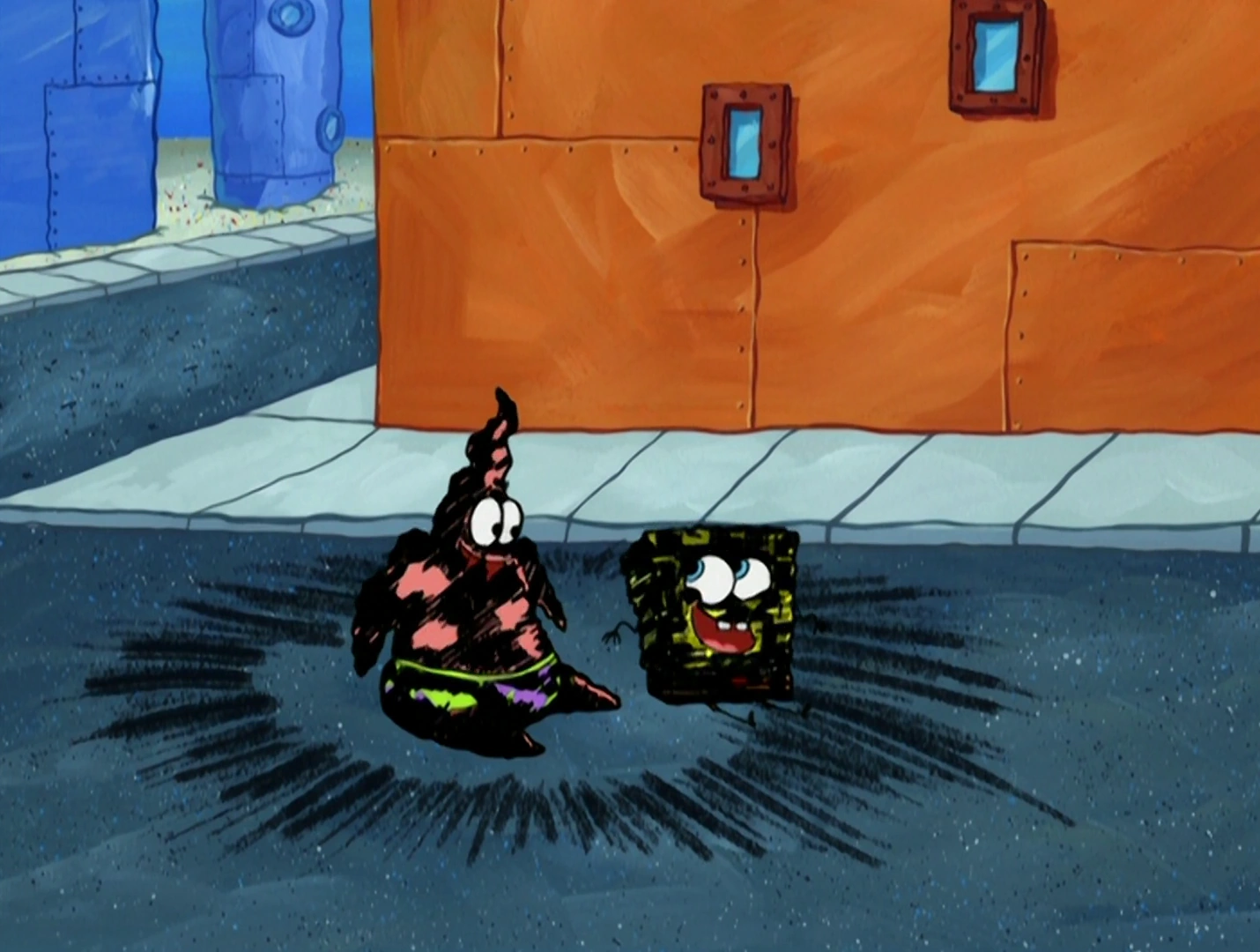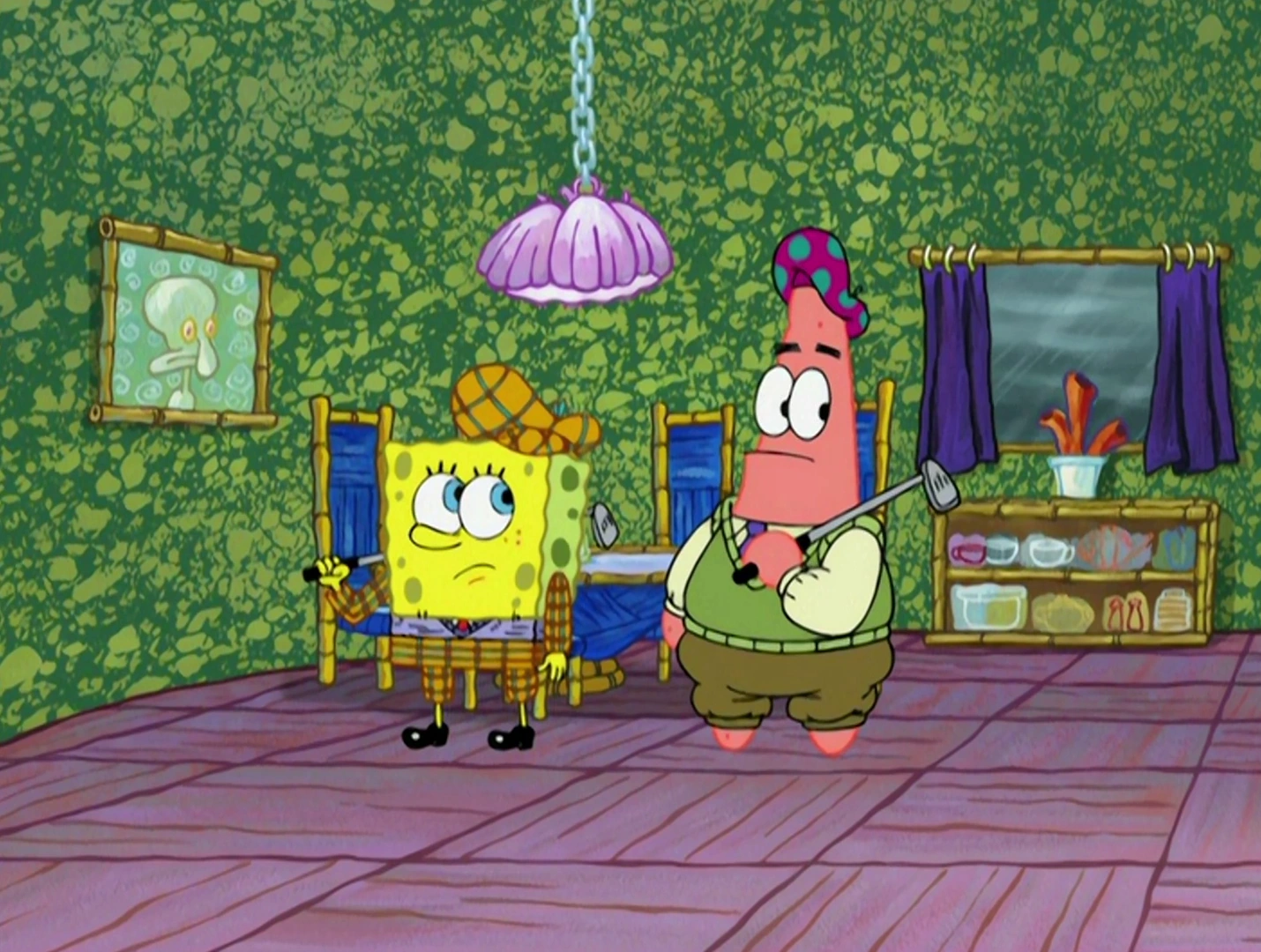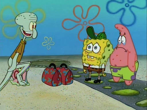- In "The Thing," He and Patrick antagonized Squidward by asking so many questions. They also broke into the zoo and broke out Squidward.