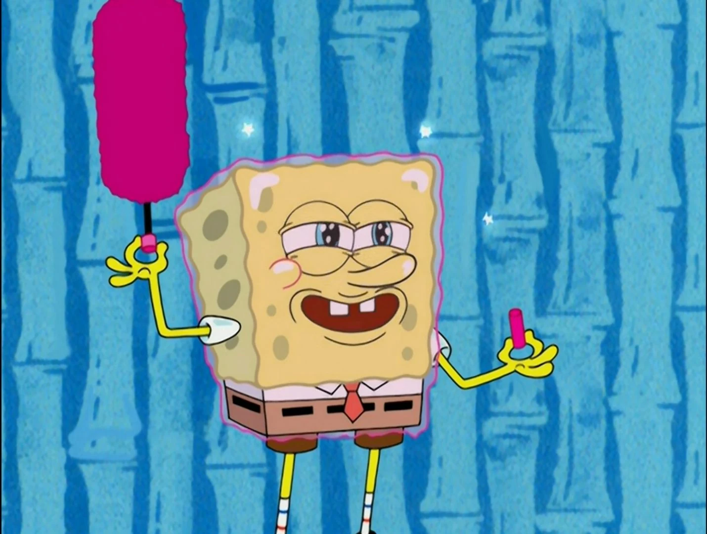 - "Big Pink Loser" - SpongeBob thinks, "At least I'm safe inside my mind." Patrick thinks the same, as a result SpongeBob screams.