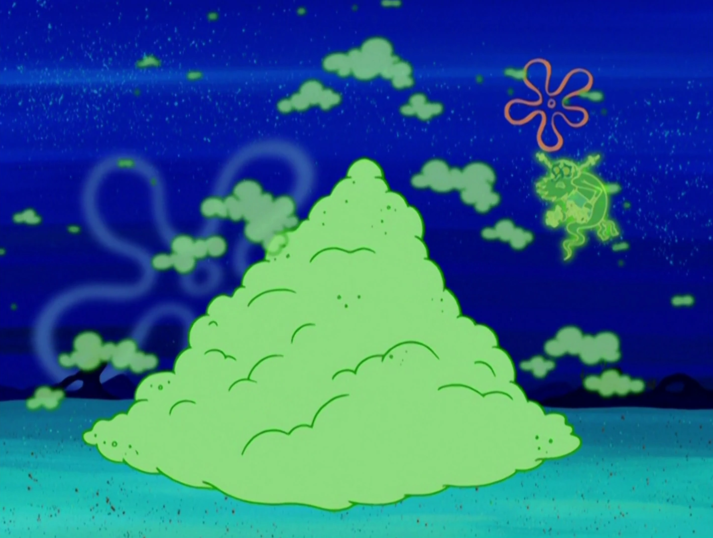 - In "Squidward, the Unfriendly Ghost," He sent Squidward up in the sky even though Squidward said no more favors. However, this was because he thought that Squidward was still dead, due to his naive nature.