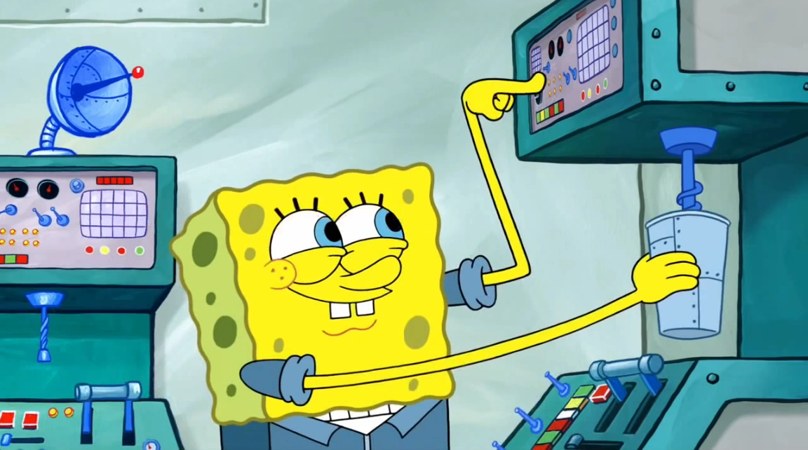 - Fry Cooking: SpongeBob has a job cooking Krabby Patties at the Krusty Krab.
