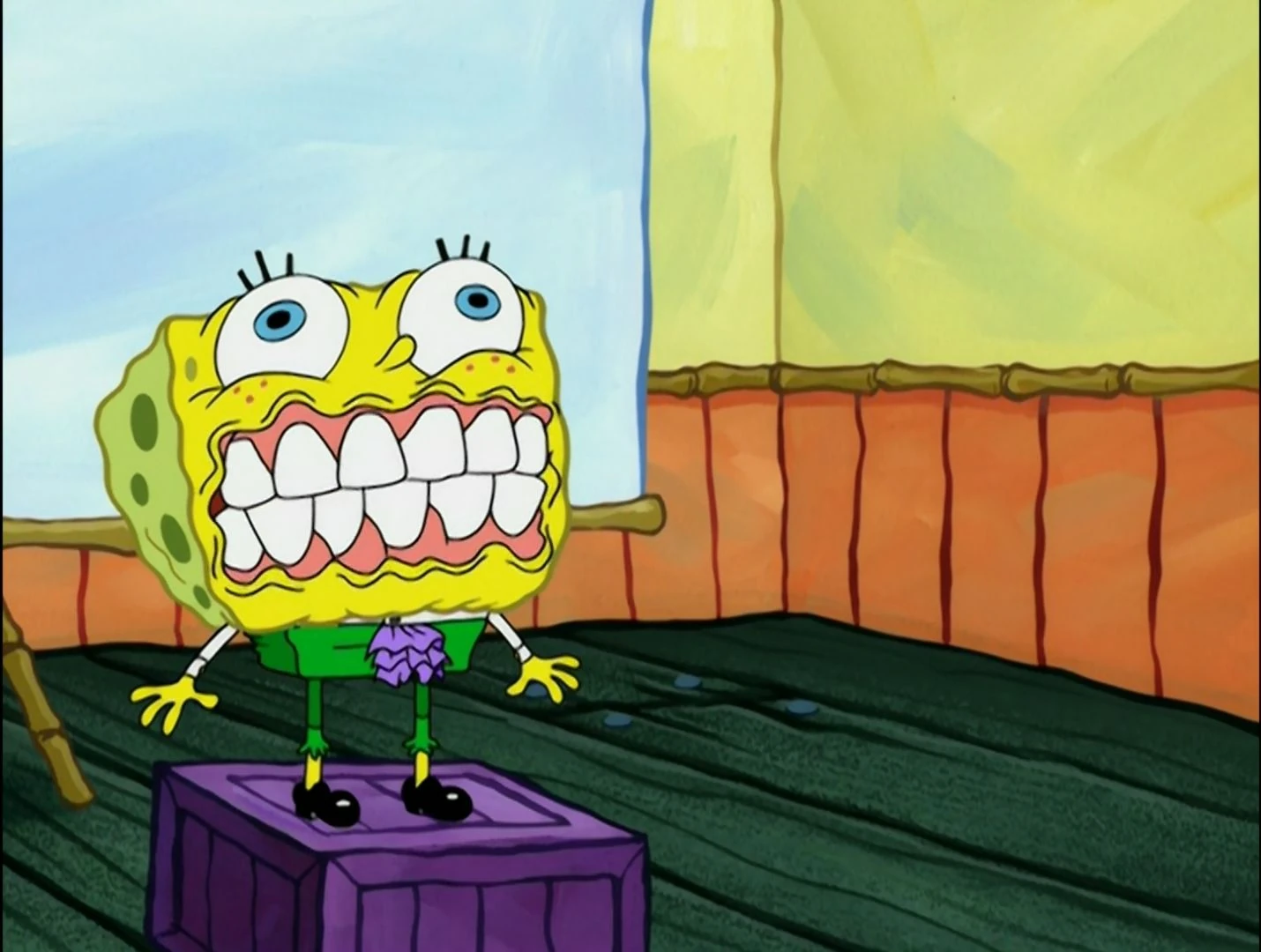 - In "Pranks a Lot," He and Patrick trespassed and scared everyone, and attempted to burn Mr. Krabs' money.