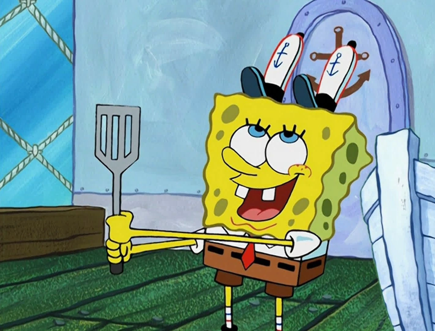 - In "Stanley S. SquarePants," after taking the blame for most of Stanley's mistakes, he finally exploded at both Mr. Krabs and Stanley when he saw that his spatula was broken by Stanley.